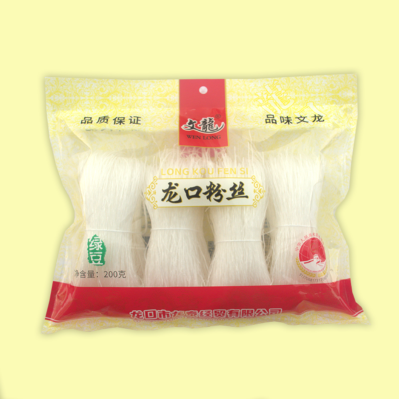 文龙龙口粉丝有丰富的营养价值,可以和多种食品搭配食用,可荤可素,口感清脆,被誉为“传统美食”。材料均是人工甄别,精挑细选,色泽青绿,经过多种安全检测,确保食品安全。得天独厚的生长环境,阳光雨露细润下的自然生长,真正来自大自然的美食佳品、